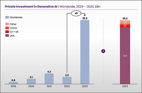 Generating investments: Private investment in generative AI has spiked since 2019. (Source: CISAC/PMP Strategy/Stanford University)