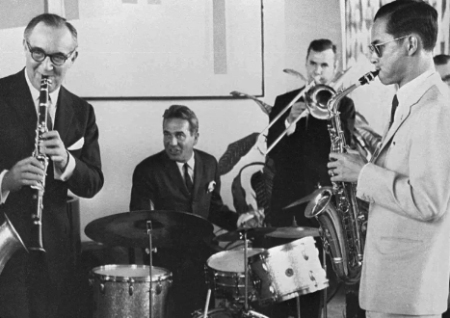 The king and I: Thai King Bhumibol Adulyadej (right) jams with jazz great Benny Goodman (left).