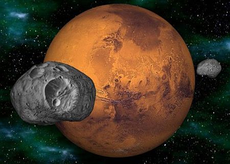 Nothing to fear: Artist’s conception of the Red Planet’s twin satellites.