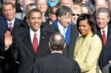 Peaceful transfer: President Obama (left), making history in 2009.
