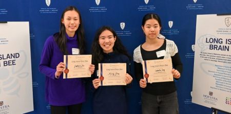 Roughly 60 high schoolers from across Long Island and New York City gathered at the Donald and Barbara Zucker School of Medicine at Hofstra/Northwell in Hempstead for Monday’s regional round, focused on the human brain and, possibly, future neuroscience careers. Melody Hong of Levittown’s General Douglas MacArthur High School (first place), Stephanie Hsu of Jericho High School (second place) and Isabella Fong of Great Neck South High School (third place) all earned tickets to the National Brain Bee Championship, scheduled for April at the University of Central Florida.