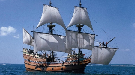 Ship shape: Anchored in Massachusetts’ Plymouth Harbor, the Mayflower II is a faithful replication of the original.