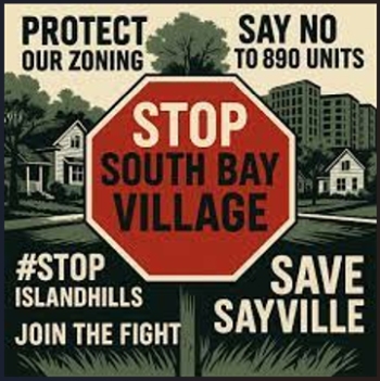 Stop sign: The well-organized resistance to Rechler Equity Partners’ Sayville development plans is not impressed with the builder’s newest proposal.