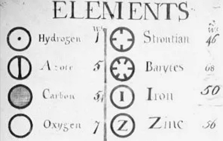 Signs here: Dalton’s first-ever atomic symbols were nothing like the chart commonly used today.