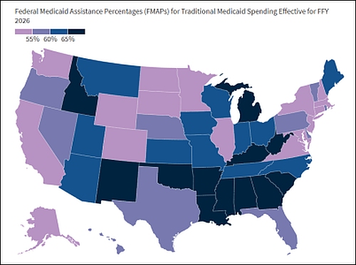 Show me where it hurts: Lower-income states receive the lion’s share of federal Medicaid assistance — and will feel pending funding cuts the most. (Source: Kaiser Family Foundation)