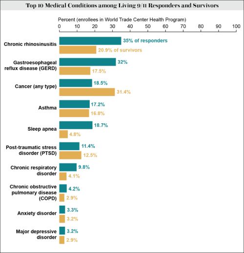 Top trauma: Anxiety disorders and PTSD rank among the top chronic illnesses suffered by 9/11 responders and survivors. (Source: Scientific American)