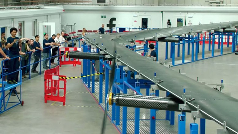 Facebook’s project is being run through a consortium of technology companies called Internet.org. Its first aircraft, built in England this year, has a wingspan of 138 feet – greater than a Boeing 737 – and is made of carbon fibers that are three times as strong as steel but weigh less than aluminum. The total aircraft weighs about a third as much as a Toyota Prius.