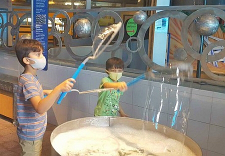 Bubble boys: “Bubbles” is one of the most popular of the Long Island Children’s Museum’s many hands-on exhibits.