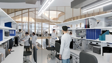 Laboratory assistance: Alongside topflight wet labs (artist-rendered here), BioGenesis Park will include professional incubators and other business-development resources.